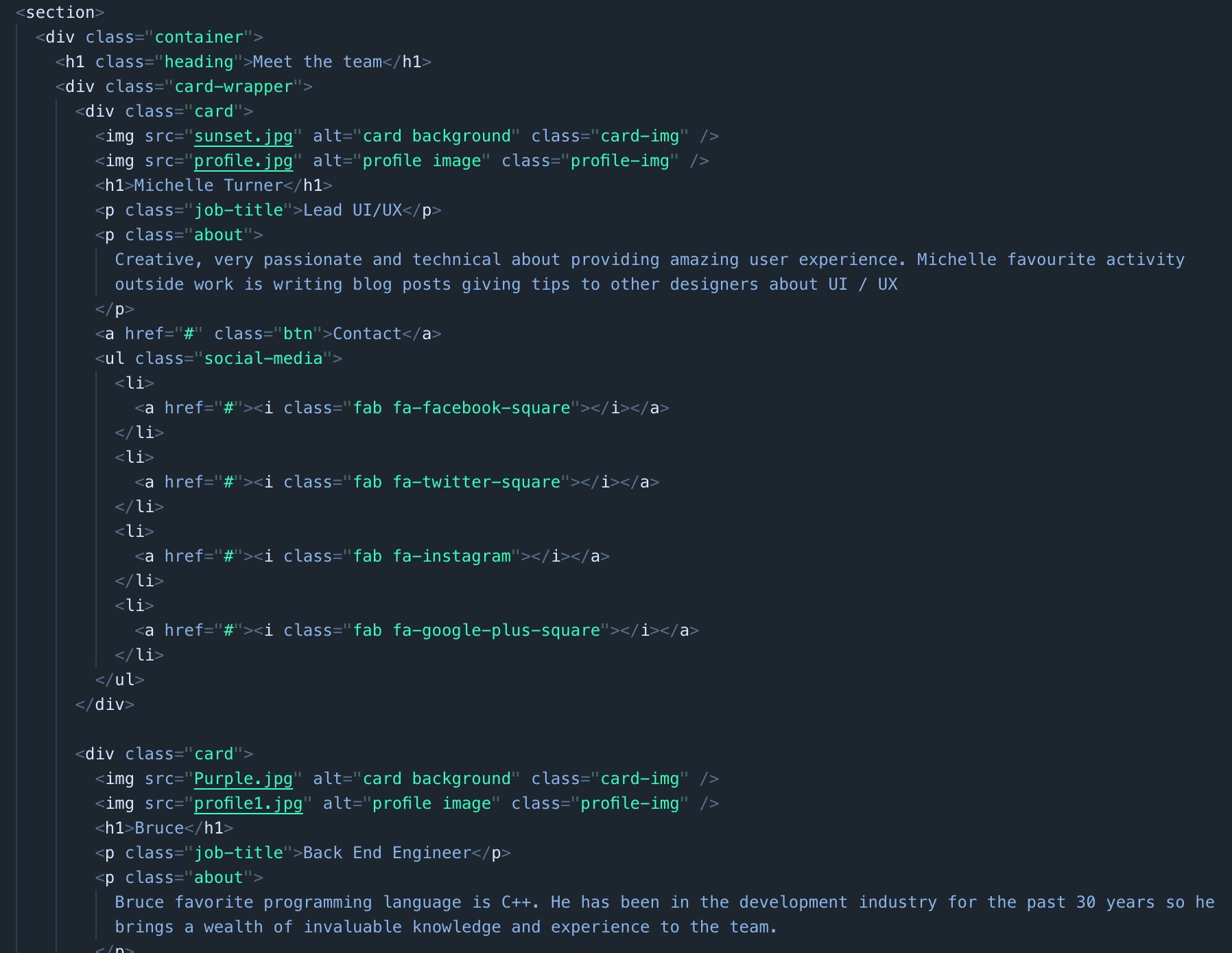 Take a look at an example below, the code is for an about us section where each person has their own display.