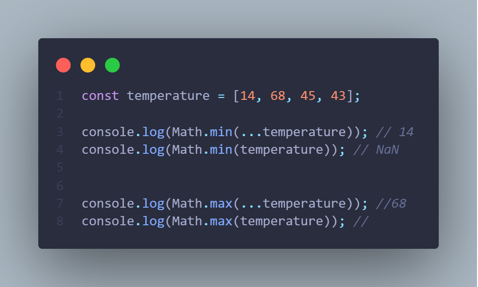 Let’s say we have an array and we want to pass each of the value in those array into a function argument that is not going to work. Let’s take a look at the code below